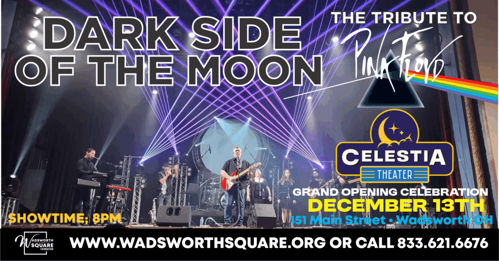 Join us for our Grand Opening of the Celestia Theater at Wadsworth Square as we welcome – – DARKSIDE OF THE MOON – A tribute to the sights and sounds of Pink Floyd. Beyond a tribute, Dark Side of the Moon is a testimonial to the unique music of Pink Floyd and the emotions they stir. Dark Side of the Moon recreates, to a higher degree, the mystic and terrestrial sounds of the phenomenon that is Pink Floyd.