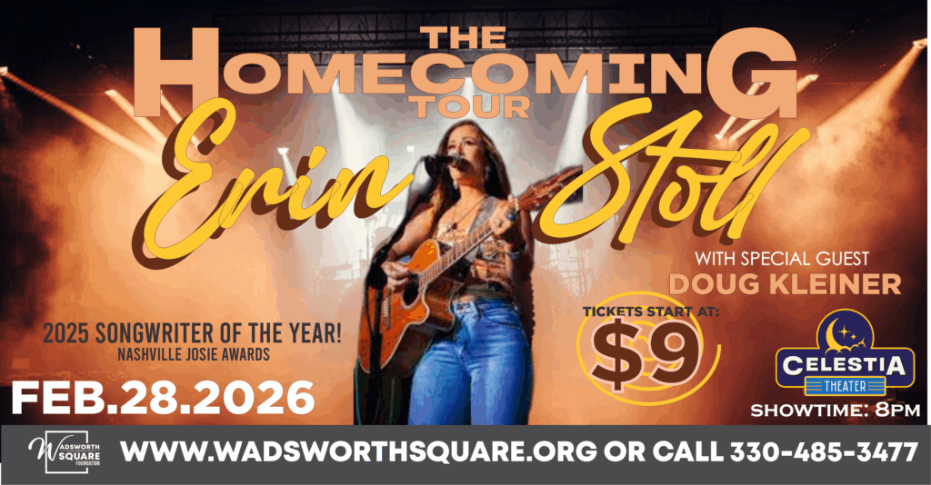The Celestia Theater & Wadsworth Square Foundation welcomes Wadsworth’s Own and Nashville Recording artist, ERIN STOLL February 28 2026.