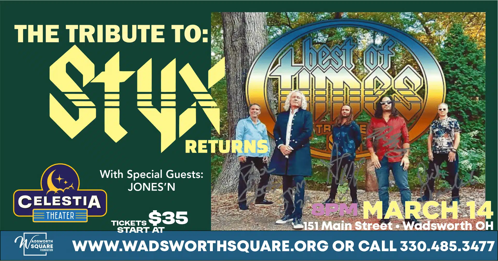 Join us March 14th for the Authentic Tribute Concert – Best of Times, The Styx Tribute