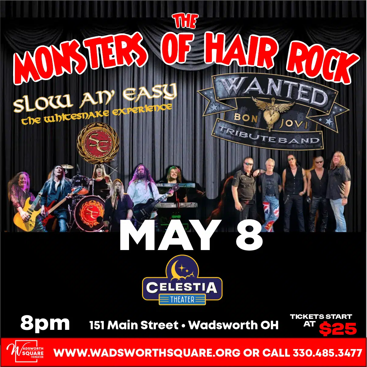 It’s the MONSTERS of HAIR ROCK with the Music of Bon Jovi and Whitesnake with Wanted and Slow an’ Easy!