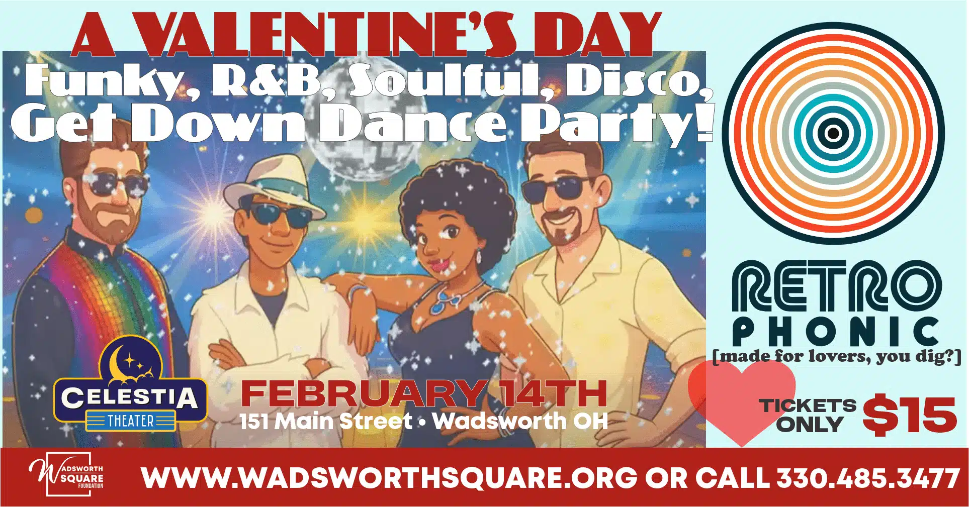 Retrophonic revives all of the 70’s and 80’s Hits from those TV Dance Shows!! Bring your date and your dancin’ shoes to the grooviest, hippest Valentine’s concert in the area.